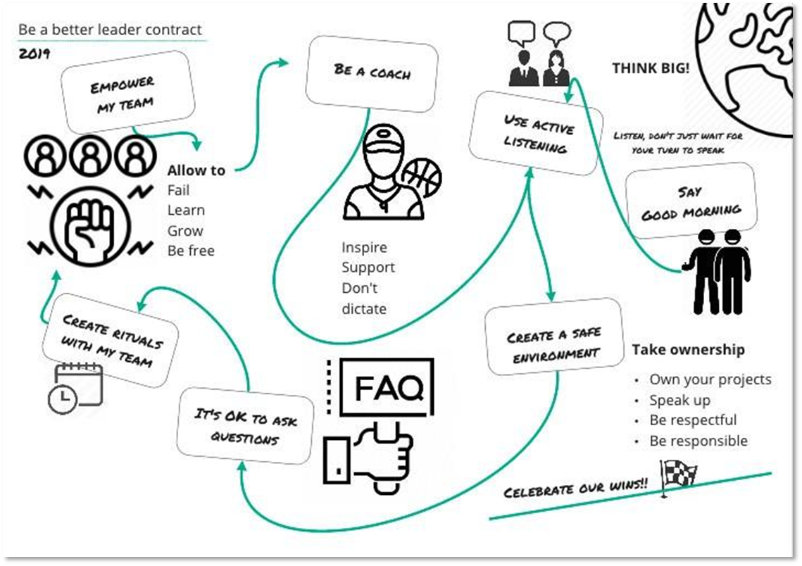 A published social contract, usually a one-pager that serves as the team's agreement with each other