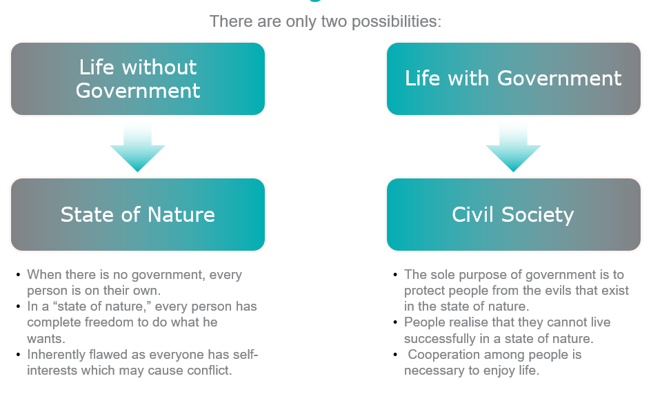 People create a social contract – an agreement to grant a limited amount of power to a government in exchange for some of their personal freedom so they can live together peacefully.